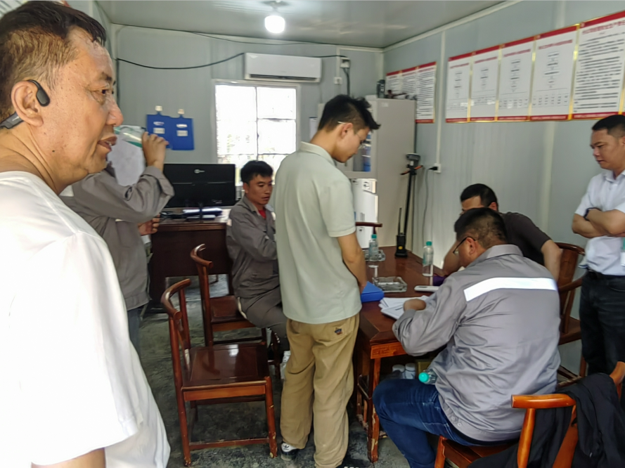 檢查過程中檢查組領(lǐng)導(dǎo)深入檢查組一行首先到礦區(qū)進(jìn)行檢查,再到現(xiàn)場辦公室檢查業(yè)內(nèi)資料,對都安礦施工進(jìn)度、配套設(shè)施建設(shè)情況給予肯定,同時表示在礦山基建工作推進(jìn)的同時需要做好安全預(yù)防工作,正視工作中存在問題并及時糾正。