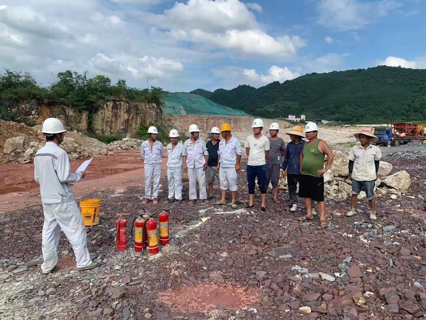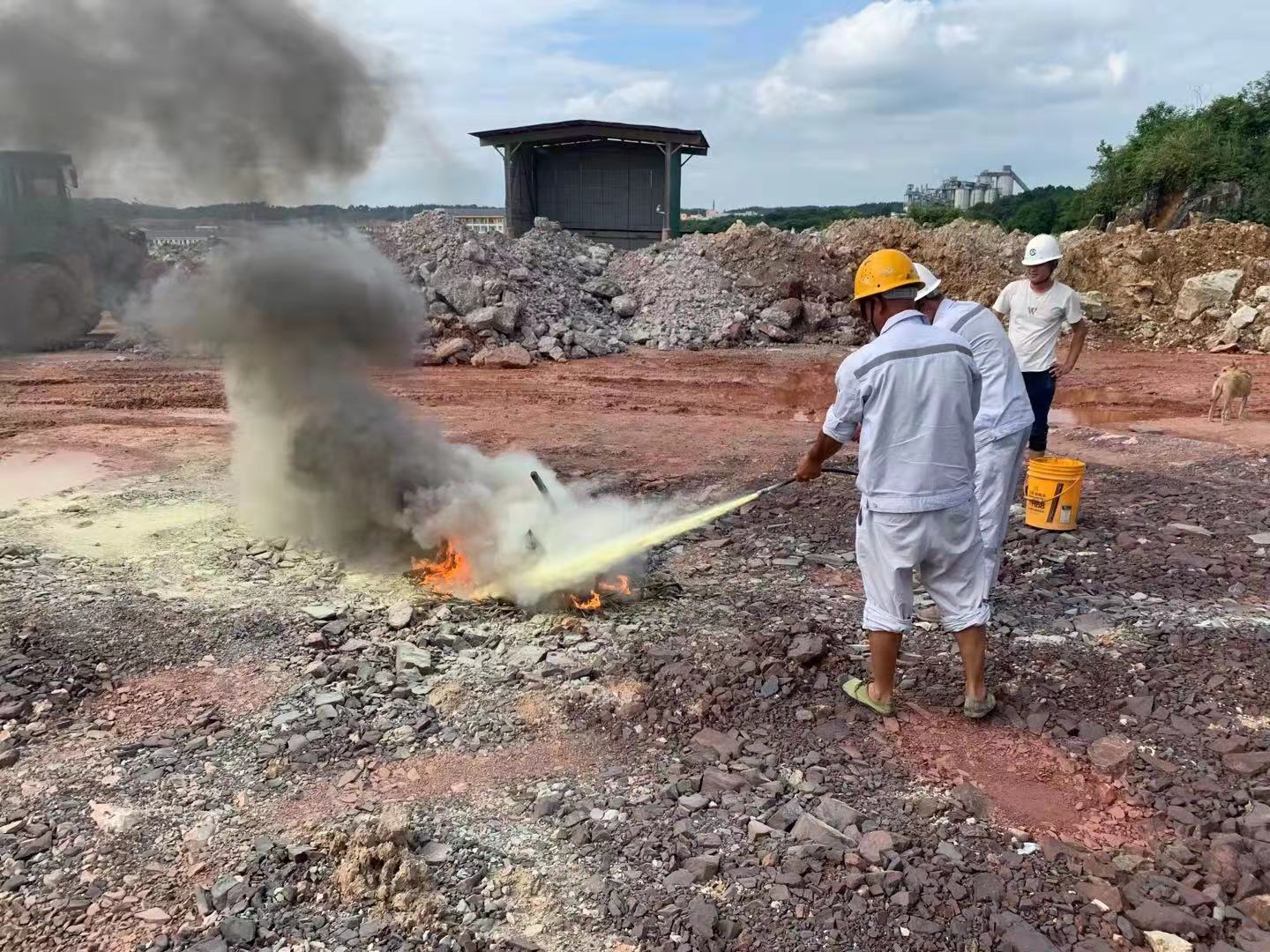 安全宣講階段:礦山專(zhuān)職安全員對(duì)此次消防演練的目的及消防演練的重要性進(jìn)行了傳達(dá)貫徹,并向員工說(shuō)明了滅火器的使用方法、滅火器的種類(lèi)和滅火類(lèi)型,滅火注意事項(xiàng),并就如何使用滅火器補(bǔ)救初期火災(zāi)等進(jìn)行了現(xiàn)場(chǎng)示范。